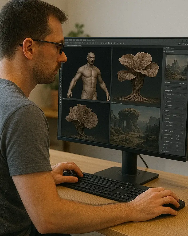 Creates the digital assets for each scene. Under the guidance of the Art Director, this team will design and model the characters, environments, and bio-art sculptures. Their work brings the written descriptions of Luminarian crystalline cities, Umbriel's biomechanical factories, and Elara's ethereal landscapes into a tangible, 3D form.