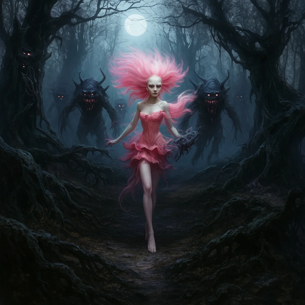Olena's journey takes a dark turn on Umbriel, a world of biomechanical decay. She is captured by Commander Lyrax, a military leader who seeks to control the Aether-Nexus. Here, Olena faces her greatest challenge, forced to perform in a cruel "bio-art fashion show" to prove her "utility." She meets two Umbrian guards, Vitrail and Kane, and uncovers Lyrax’s tragic past. With their help, Olena escapes, realizing that love can also be a defiant act of compassion.
